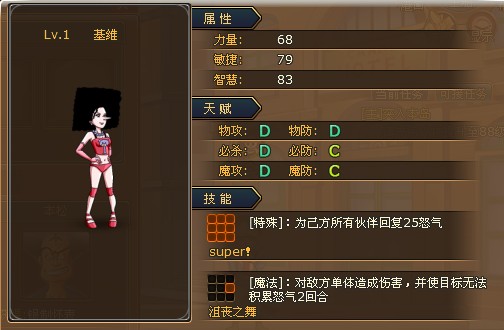 另外还有一个会谈伙伴也非常不错,就是弗兰奇副本里边的一个,也是方块头,基维,普通技能+25怒气,怒气技能:对敌方单体造成伤害,并使无标无法累积怒气2回合,是不是很变态??鼓舞型的香吉士啊这是。会谈到的大腿们也可以尝试一下。